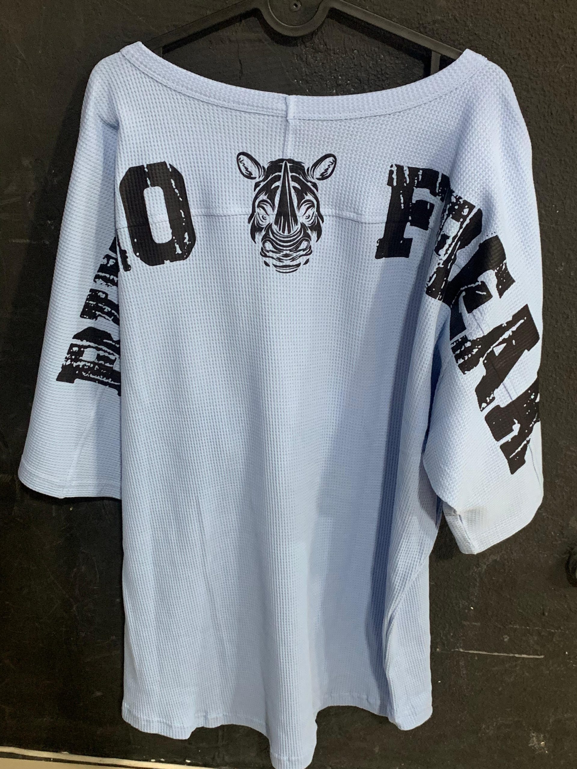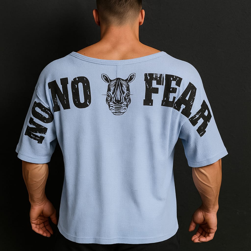 Os gráficos foram concebidos para serem vistos de todos os ângulos. Um logótipo "RHINO FREAK" maciço e desgastado em preto envolve as costas, passando pelos ombros, até ao peito. Centrado nas costas, o nosso icónico logótipo da cabeça de rinoceronte é uma marca de poder e resistência. Esta não é apenas uma camisola; é uma armadura para o seu treino.